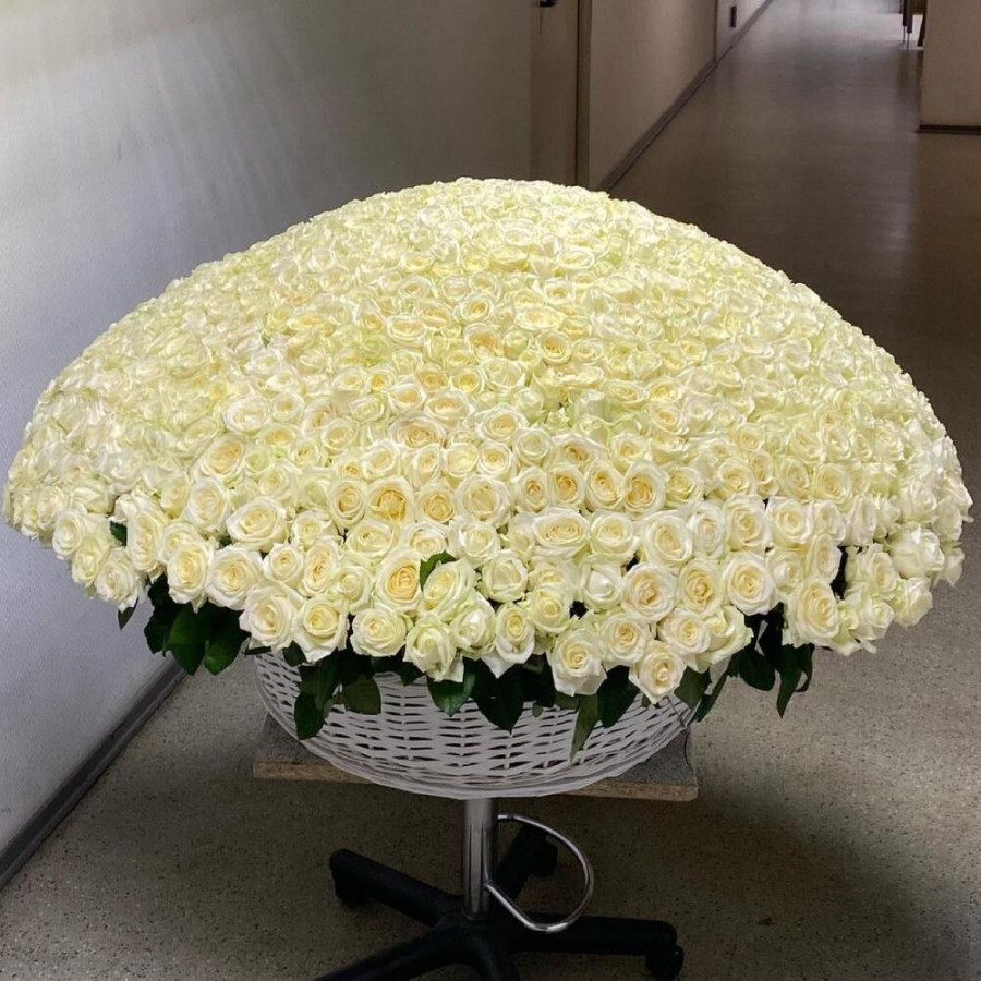 1001 белая роза в корзине «Чистота» в Елизово