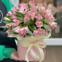 21 розовая альстромерия в шляпной коробке в Елизово