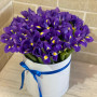 45 фиолетовых ирисов в шляпной коробке в Елизово