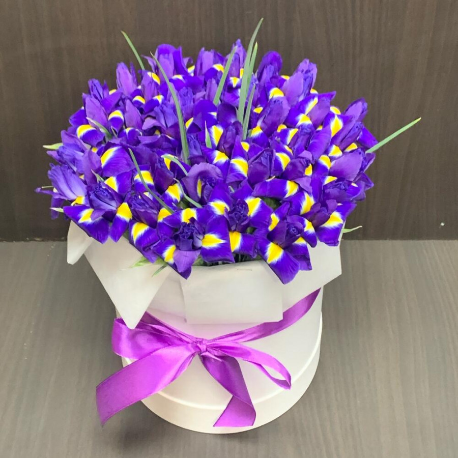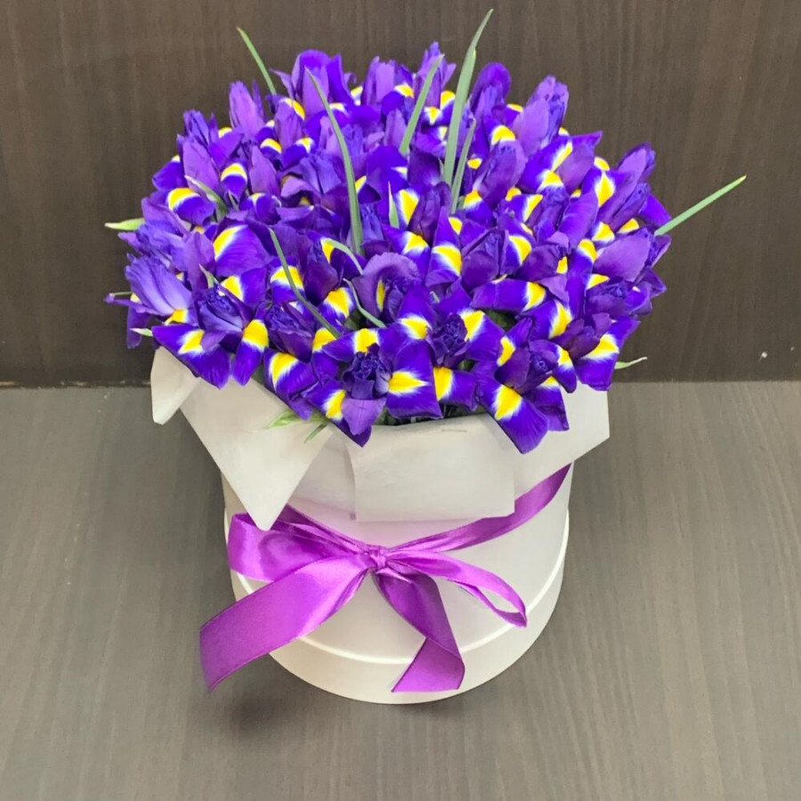 51 фиолетовый ирис в шляпной коробке в Елизово
