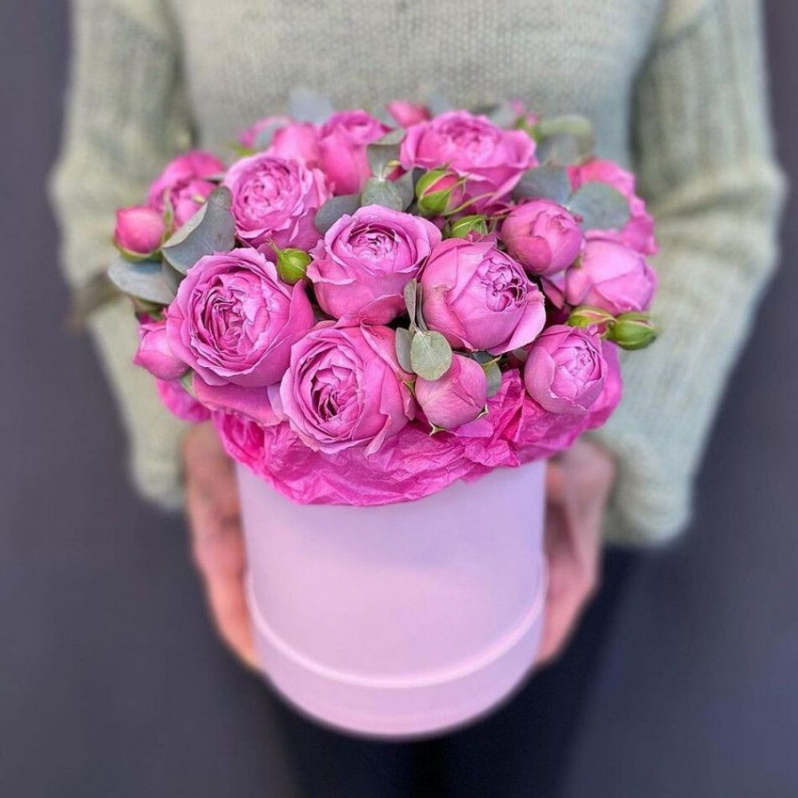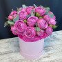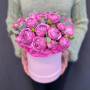 7 розовых кустовых пионовидных роз в шляпной коробке в Елизово