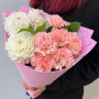 Букет из белых георгин и розовых гвоздик в Елизово
