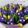 Букет из синих ирисов и желтых тюльпанов в Елизово