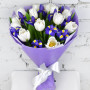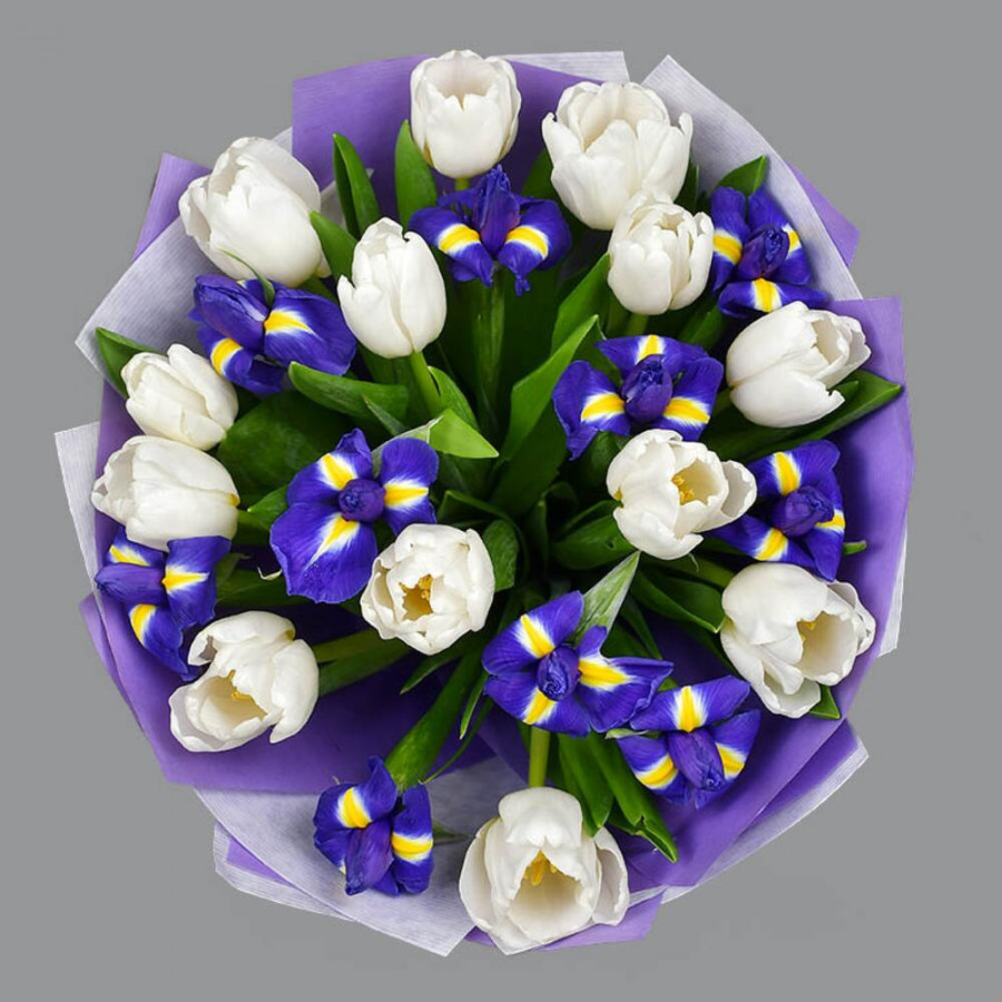 Букет из синих ирисов и белых тюльпанов в Елизово