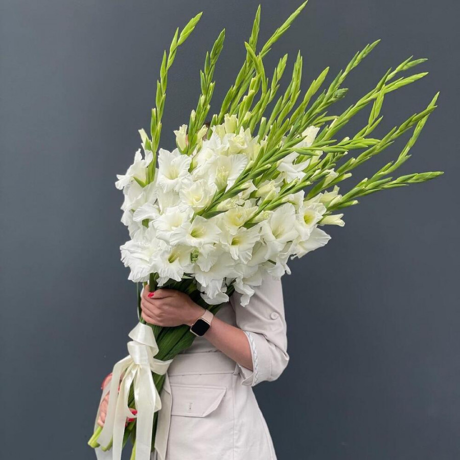 Букет из 19 белых гладиолусов под ленту в Елизово