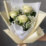 Букет из трех белых роз с белой гипсофилой - это идеальный выбор для тех, кто хочет выразить свои чувства и эмоции. Этот букет состоит из трех прекрасных белых роз, которые символизируют чистоту, нежность и любовь. Белая гипсофила добавляет букету воздушности и легкости, делая его еще более привлекательным. Такой букет станет прекрасным подарком на любой праздник или просто для того, чтобы порадовать близкого человека. Закажите букет из трех белых роз прямо сейчас, и он обязательно порадует получателя!