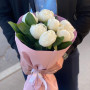 На фото букет из 7 белых пионов. В составе: пион 7 шт, крафт-бумага 1 шт, атласная лента 1 шт, . Все цветы свежие и ароматные, букет красиво оформлен и отлично подходит для подарка. Доступна доставка цветов или самовывоз.