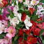 На фото монобукет из разноцветной альстромерии. В составе: альстромерия 15 шт, крафт-бумага 1 шт, атласная лента 1 шт, . Все цветы свежие и ароматные, букет красиво оформлен и отлично подходит для подарка. Доступна доставка цветов или самовывоз.