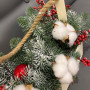На фото новогодняя композиция в деревянном ящике. В составе: рябина 3 шт, еловая ветка 2 шт, хлопок 3 шт, деревянный ящик (s) 1 шт, . Все цветы свежие и ароматные, букет красиво оформлен и отлично подходит для подарка. Доступна доставка цветов или самовывоз.